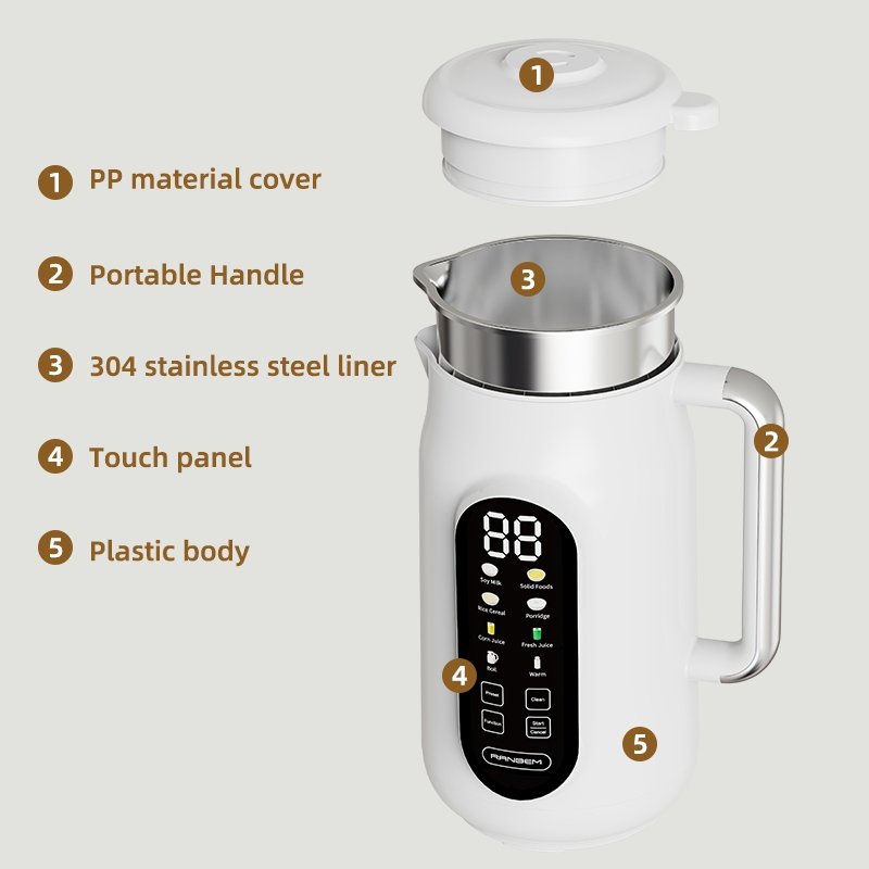 Tap the smart panel to choose “Soy Milk”, “Soup”, or “Smoothie”. The machine handles the rest.